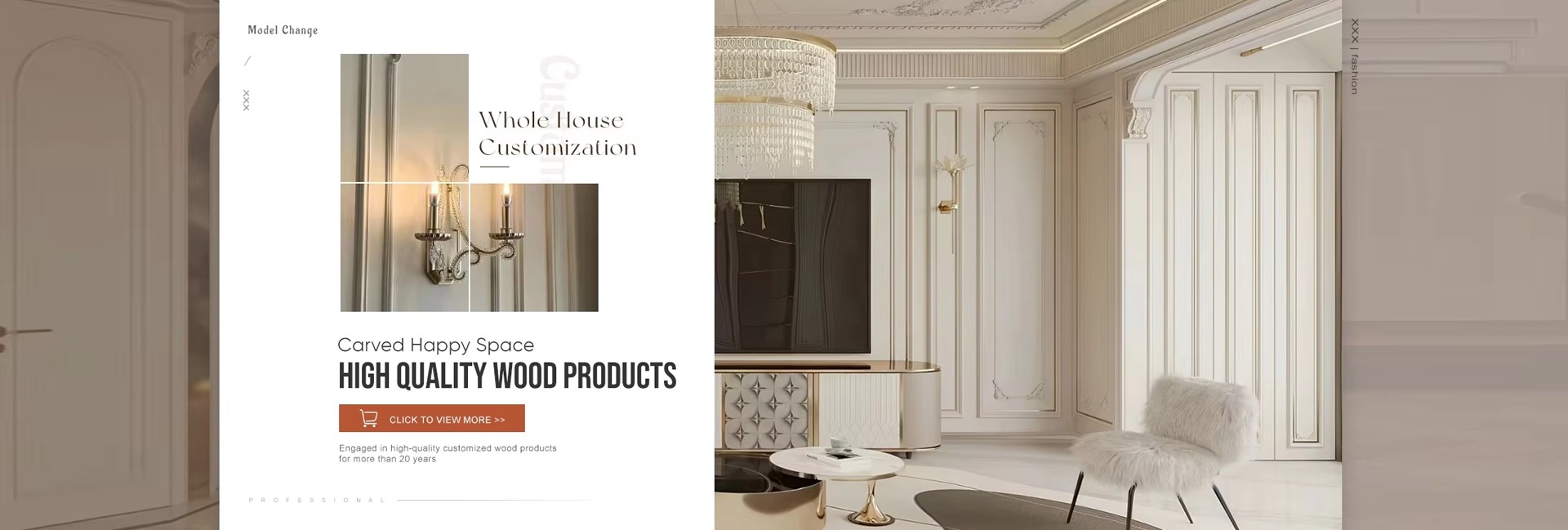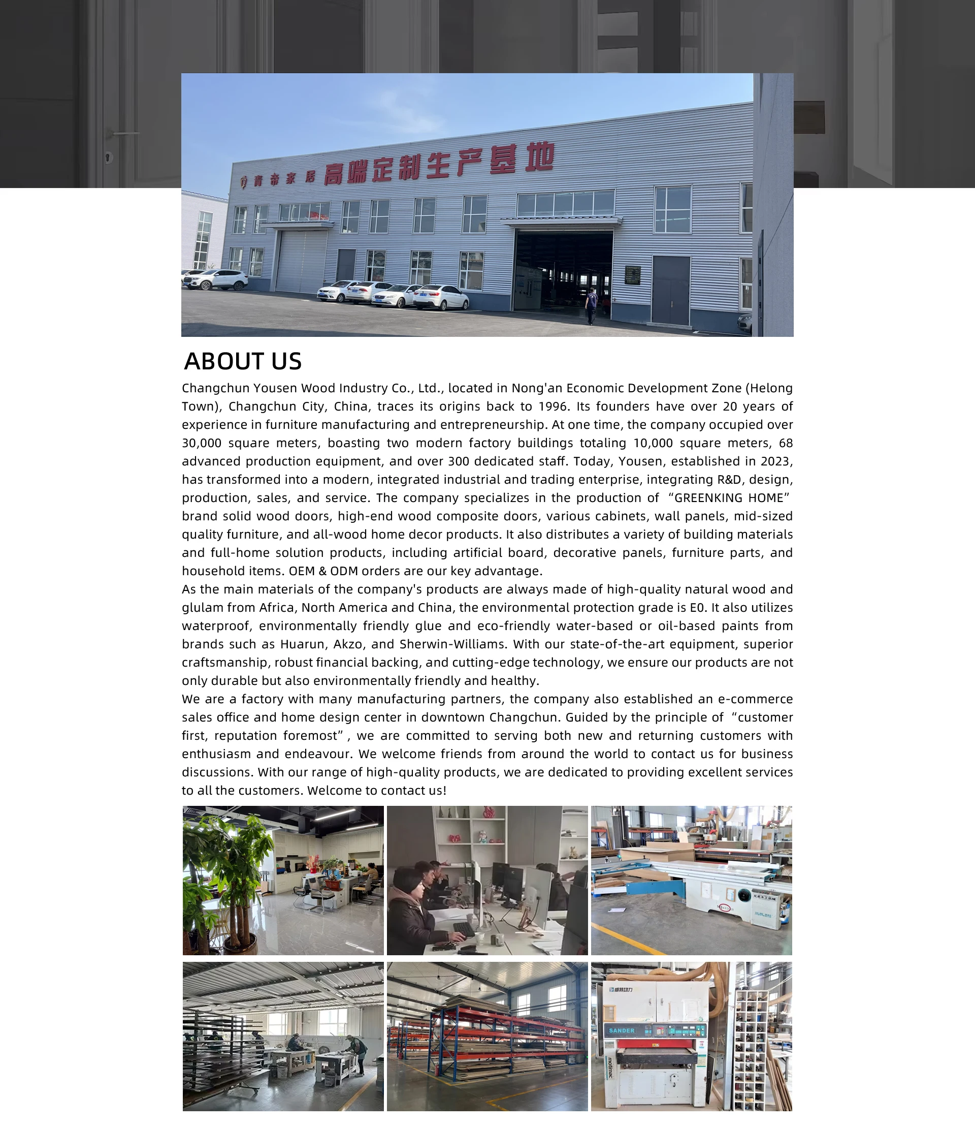 Principais produtos:Armários de madeira, prateleiras de madeira, portas de madeira, móveis de madeira, todos os móveis para casa